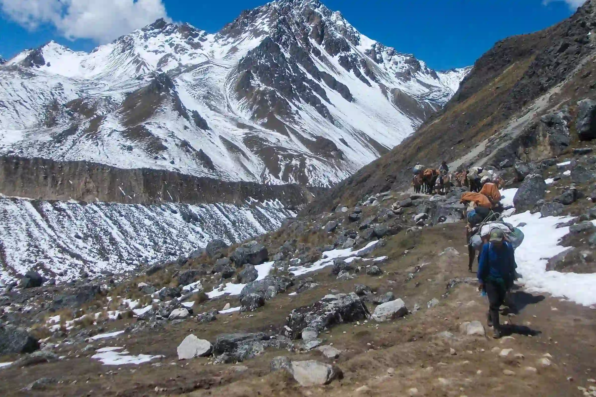 - Porteadores y caballos encargados del transporte del equipo de campamento, alimentos y hasta 5 kg de pertenencias personales por pasajero. Se prioriza el bienestar animal, evitando cualquier tipo de sobrecarga.