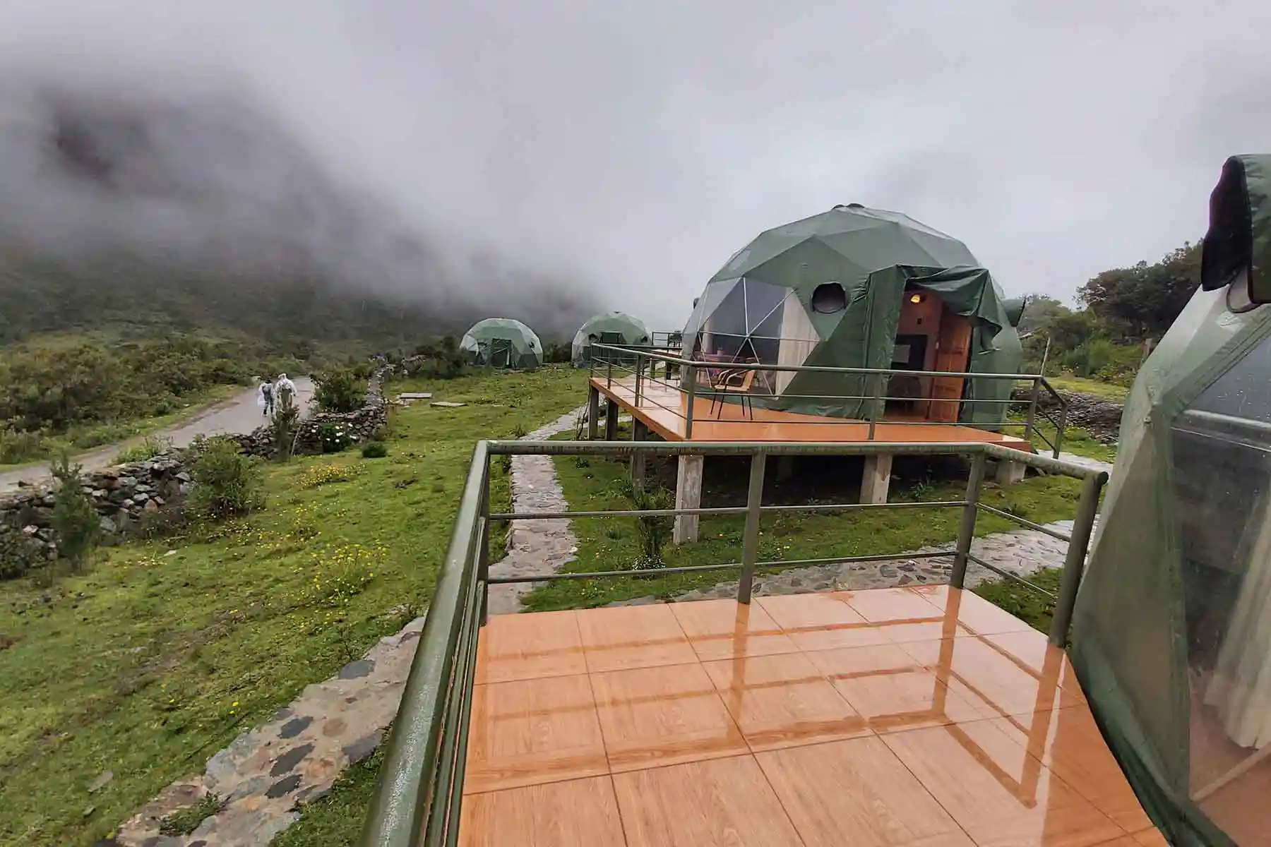 - 1ra Noche: Campamento privado Soraypampa (Sky Lodge Dome – Glamping)