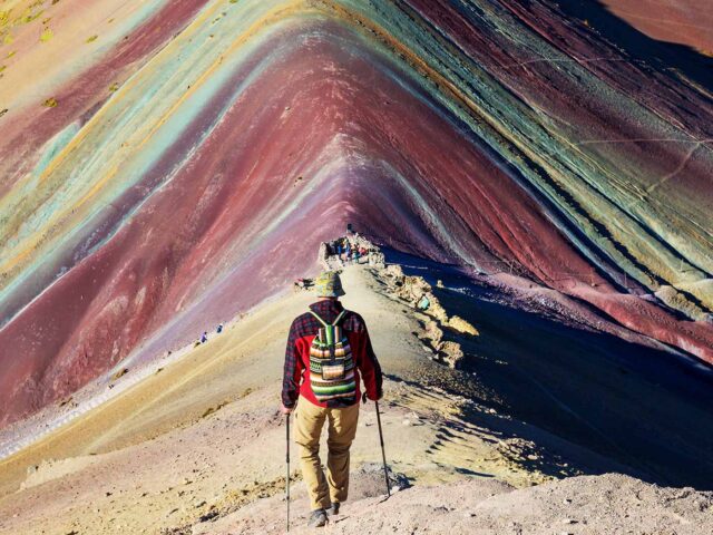 Después de una caminata total de aproximadamente 5 horas, finalmente llegamos a nuestro destino, lo que vinimos a ver….las Montañas Arco Iris (5.020 m / 16.466 pies). Después de superar el shock de su belleza, tendrá tiempo para explorar la zona. Tendrá tiempo para hacer fotos y empaparse del entorno. Pasaremos aproximadamente 30 minutos en la cima.